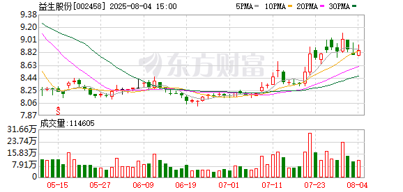 证券日报网讯 8月4日晚间,益生股份发布公告称,2025年7月份,公司未回购股份。截至2025年7月31日,公司通过股份回购专用证券账户以集中竞价方式累计回购股份数量为12,913,100股,占公司总股本的比例为1.17%。