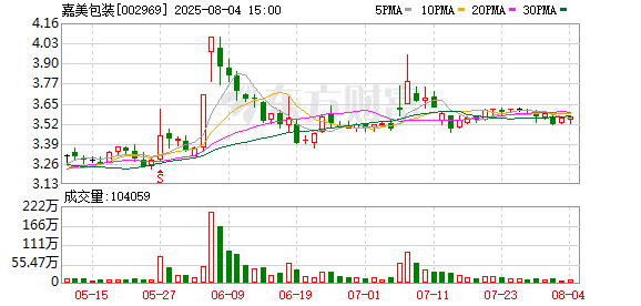 8月4日,嘉美包装(002969)发布公告,截至2025年7月31日已回购708万股,占总股本的0.74%,回购成交价格区间为3.26元/股至3.41元/股,成交总金额为2360万元。